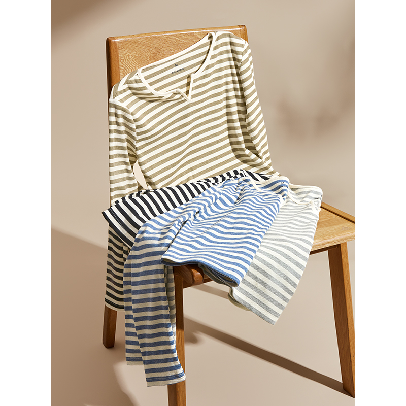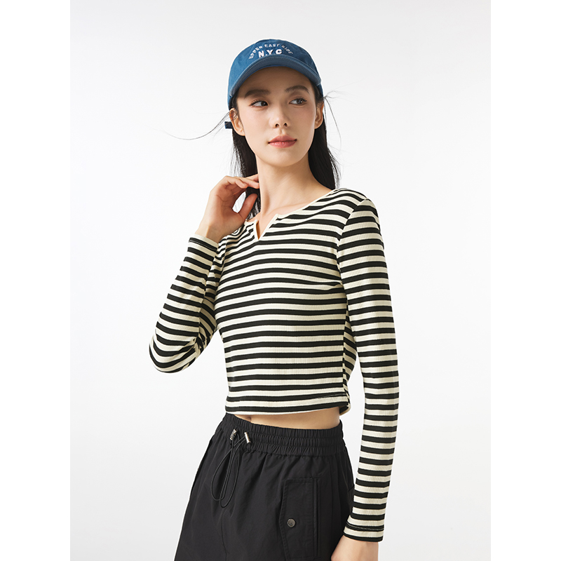 有型辣妹风内搭纹长T恤 女士T恤V领条复古个性 热风女装 24秋新款