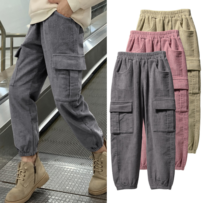 加绒街舞穿搭褶皱宽松休闲长裤 女秋冬季 子 灰色运动卫裤 自然涩美式