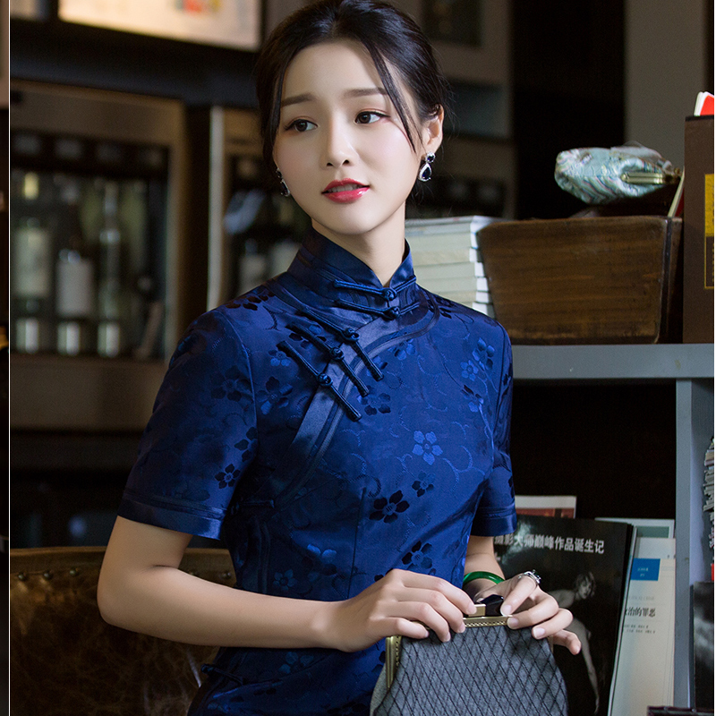 女装 收腰新中式 旗袍连衣裙夏设计感开叉复古气质时尚 中国风改良版