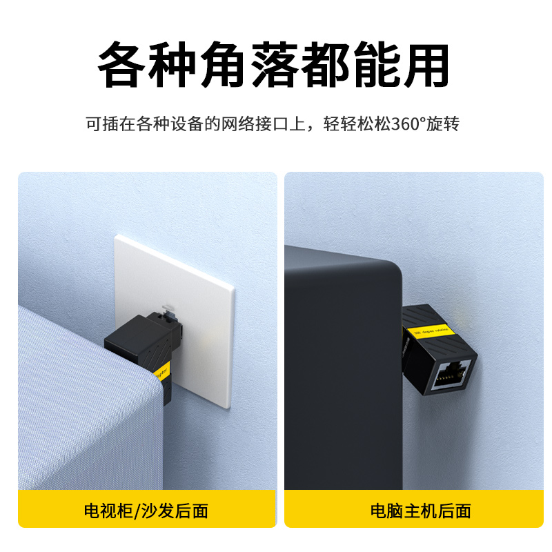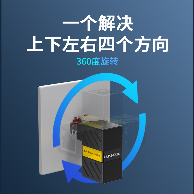 7类万兆RJ45网线转接头公转母90度弯头cat6类弯头网线延长器360度