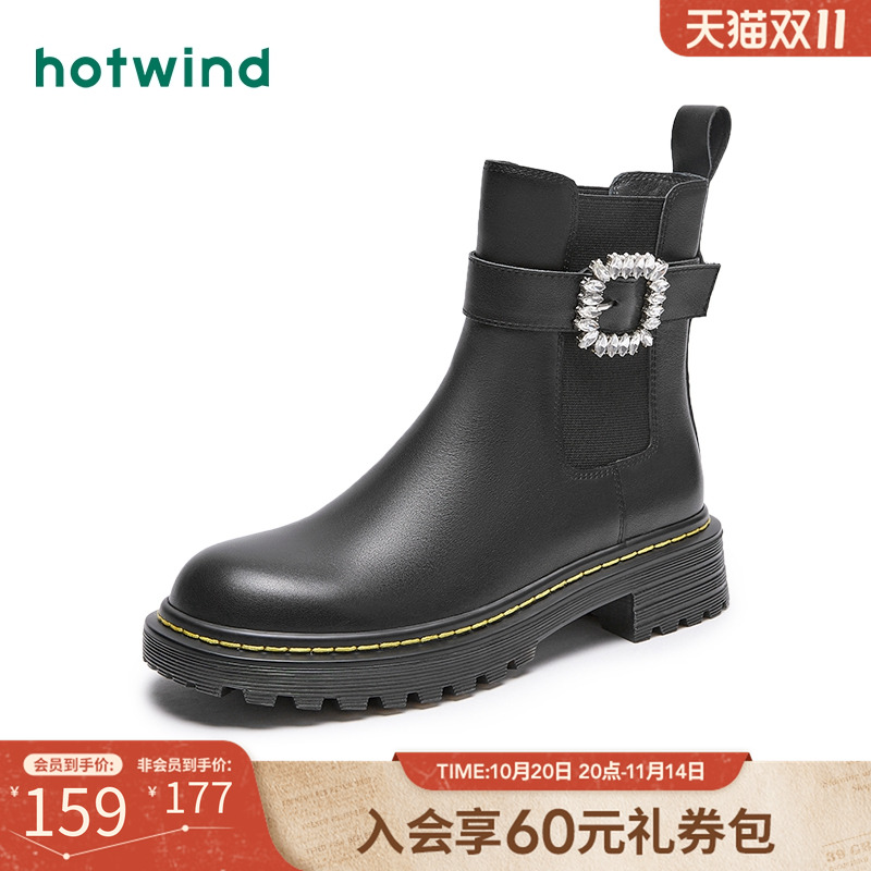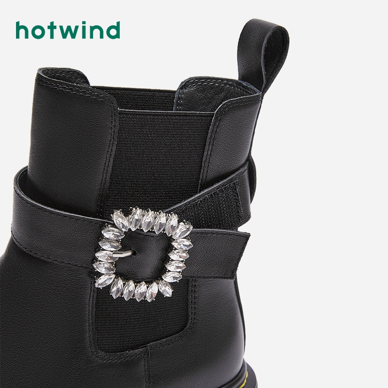 厚底时装 圆头水钻扣带瘦瘦靴简约时尚 靴 冬季 热风女鞋