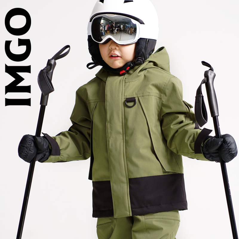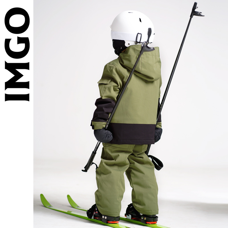 夹棉户外加绒保暖套装 专业儿童防水透气滑雪服 军绿三合一冲锋衣
