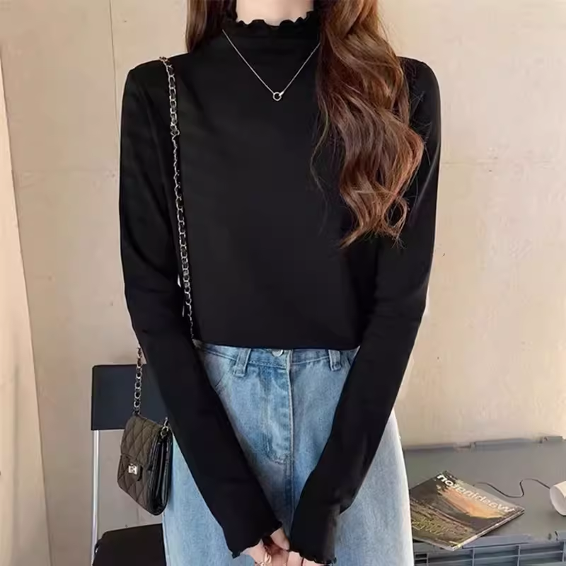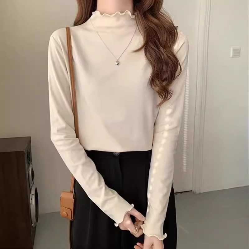 双面德绒木耳边上衣潮 风衣内搭秋冬2022年新款 半高领打底衫 女西装