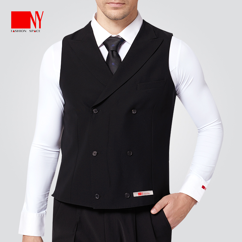 NY纳艺男士 黑色双排马甲摩登舞拉丁舞国标舞训练服练功服表演服