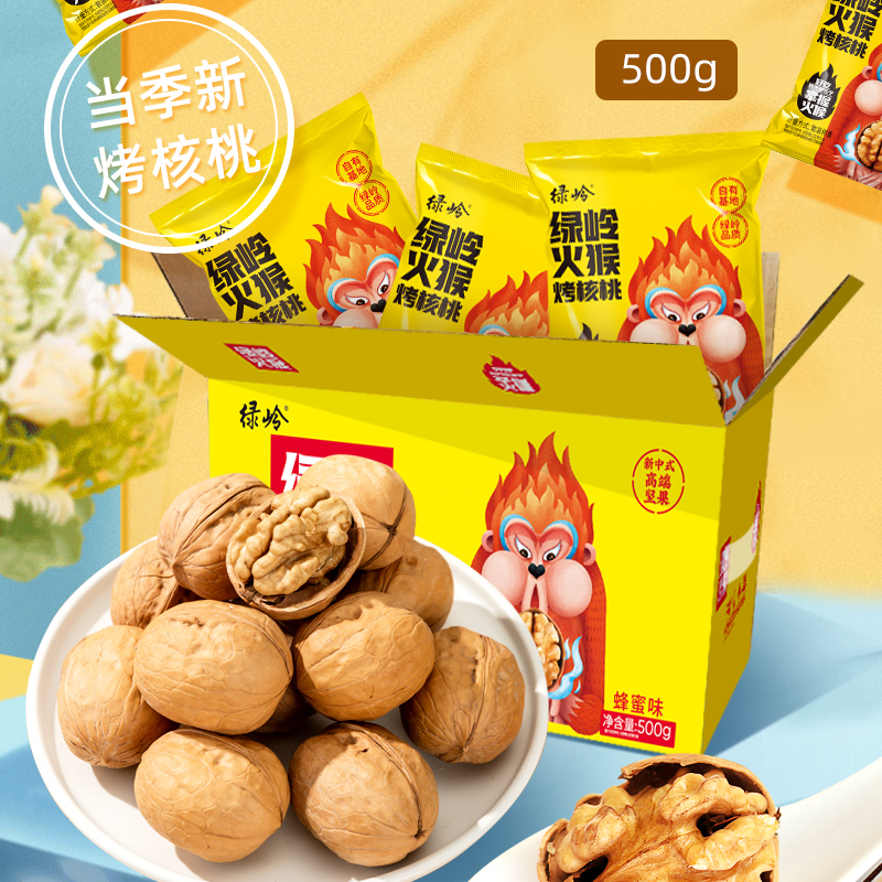 绿岭 火猴小精灵蜂蜜味烤核桃500g礼盒装