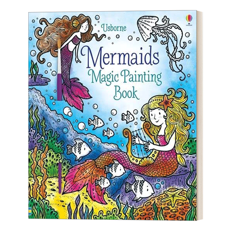 Painting 进口英语书籍 英文版 练习控笔 Mermaids Magic 美人鱼神奇图画书 Book 颜色认知 英文原版 黑白变彩色 6岁 艺术启蒙
