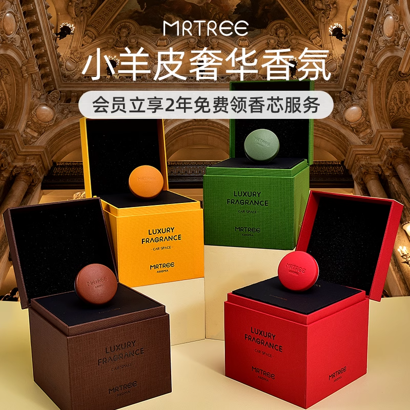 树先生高级小羊皮车载香薰汽车香水空调出风口香氛车内摆件礼盒装