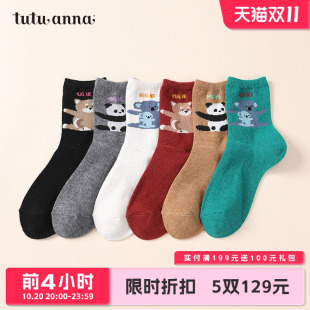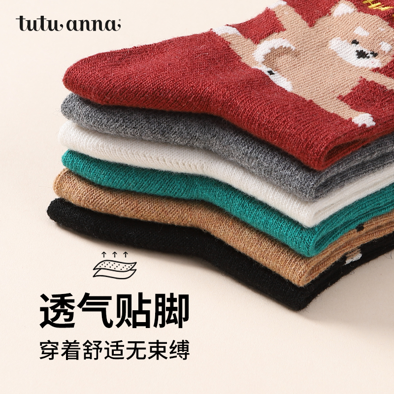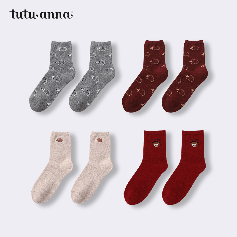 tutuanna女袜 春秋纯色刺猬图案羊毛短袜保暖柔软亲肤不勒脚外穿