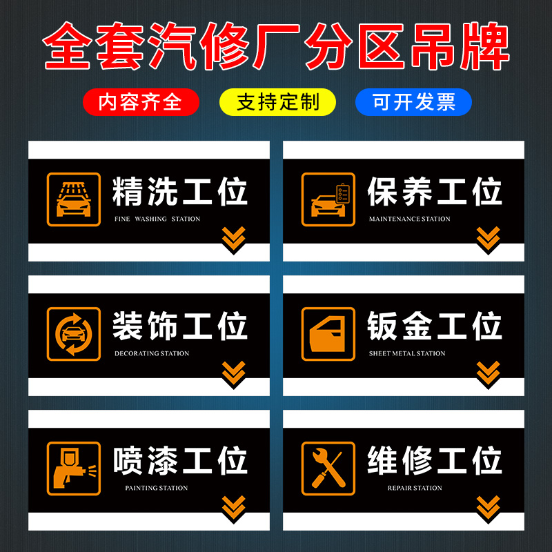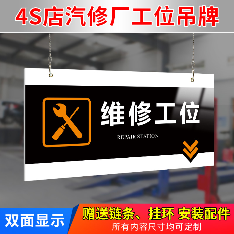 汽修厂工位养护分区牌吊牌标识牌4s店汽车保养洗车精洗工位维修工位美容配件工位吊牌指示区域牌提示牌定制