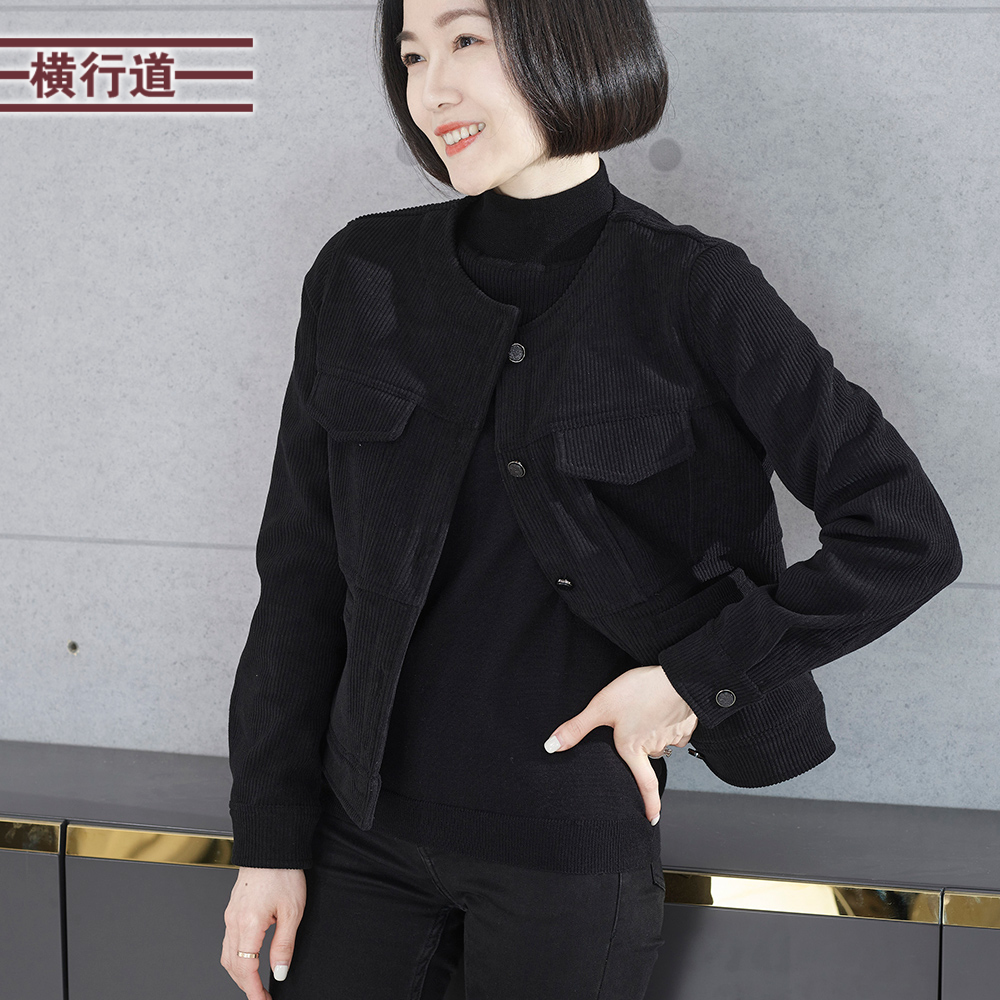 外套女宽松大码 圆领黑色灯芯绒加绒加厚中年妈妈长袖 冬装 2025新款
