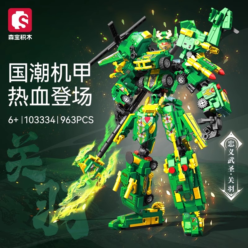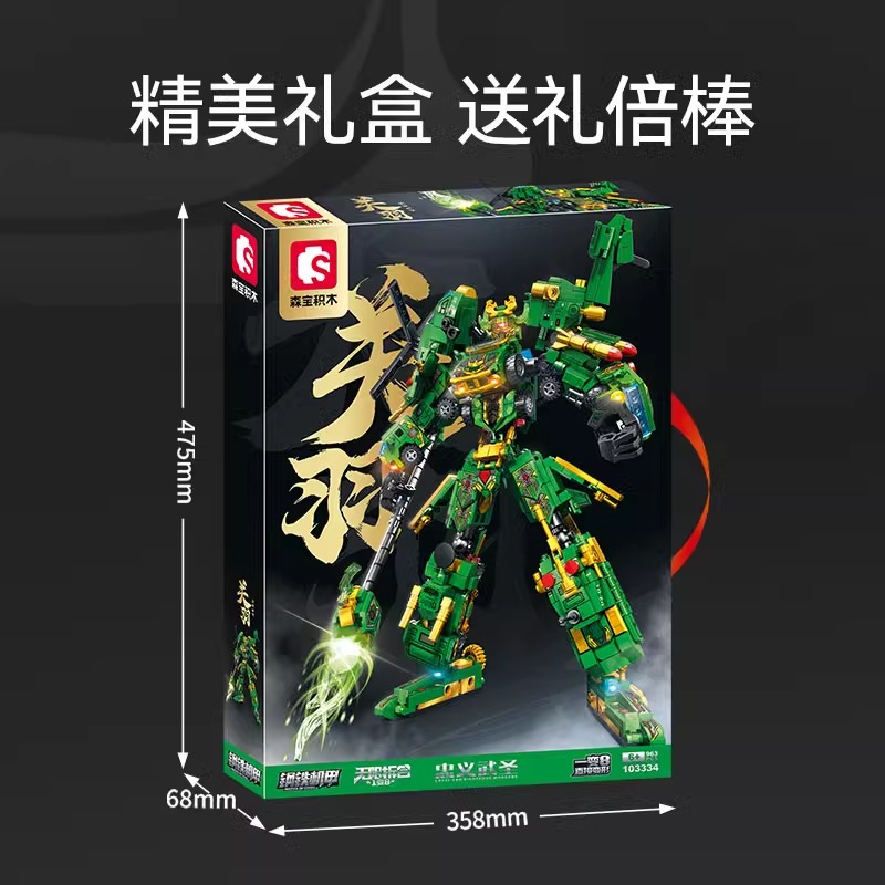 国潮积木关羽赵云变形机甲模型摆件拼装 森宝积木正版 玩具 新品