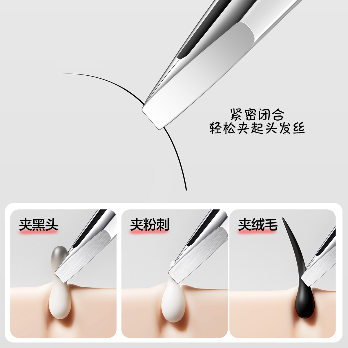 黑头夹镊子高精密粉刺针美容院安全刮粉刺夹眉毛夹细胞夹神器工具