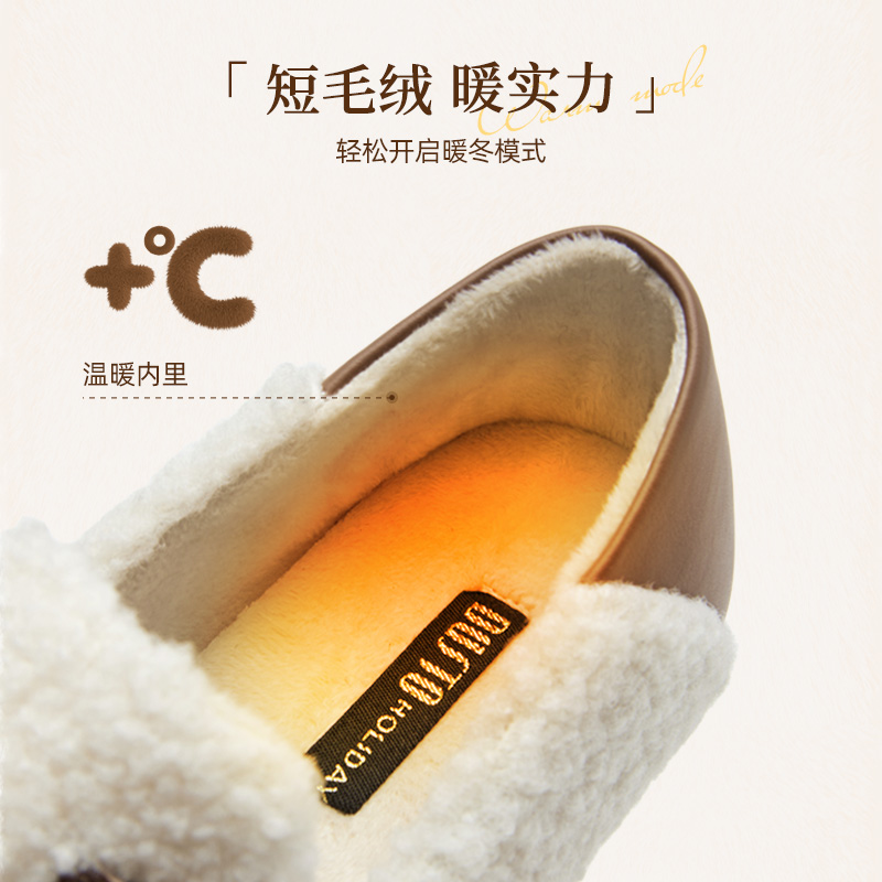 甜美圆头毛绒套脚平底拼接单鞋 大东深口鞋 新款 2025冬季 D0131 女鞋