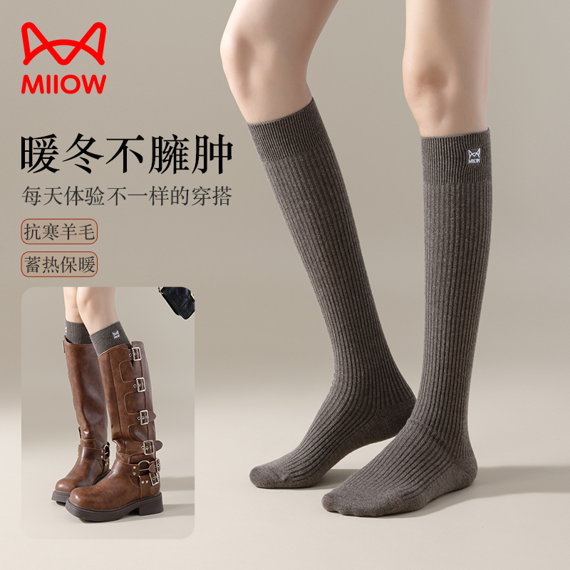 雅鹿过膝袜子女长筒袜秋冬款 长腿棉袜护膝袜套 加厚小腿袜长袜冬季
