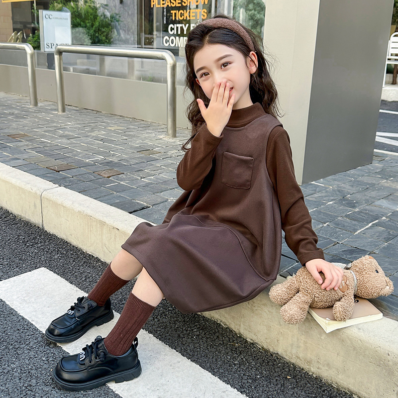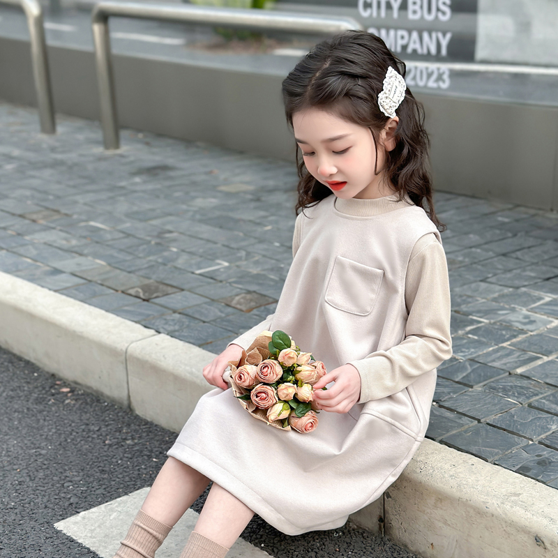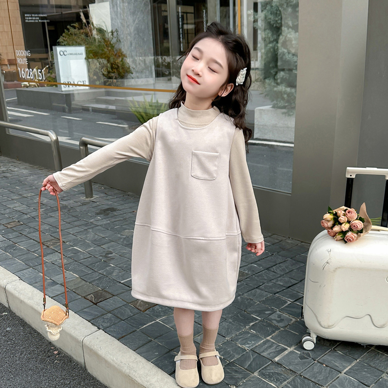 式 女童套装 高货韩系马甲裙女宝宝潮流款 春秋长袖 服两件套 2025新款