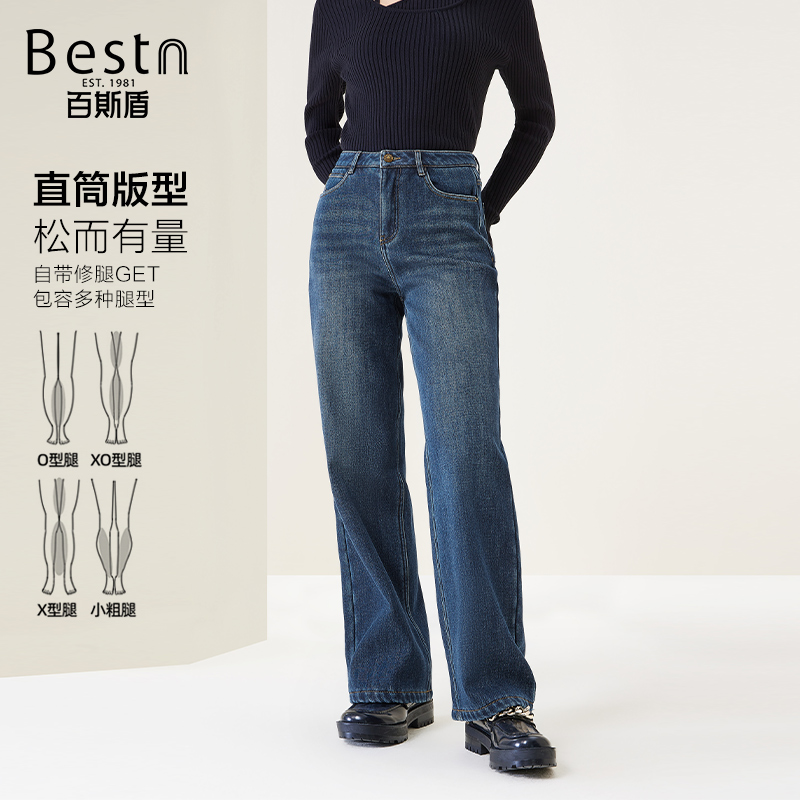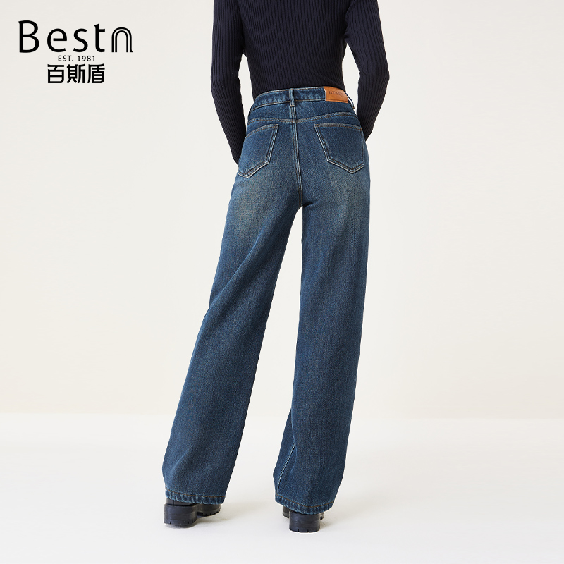 复合水貂绒 新款 百斯盾官方女装 秋季 蓄热保暖宽松直筒裤 牛仔裤