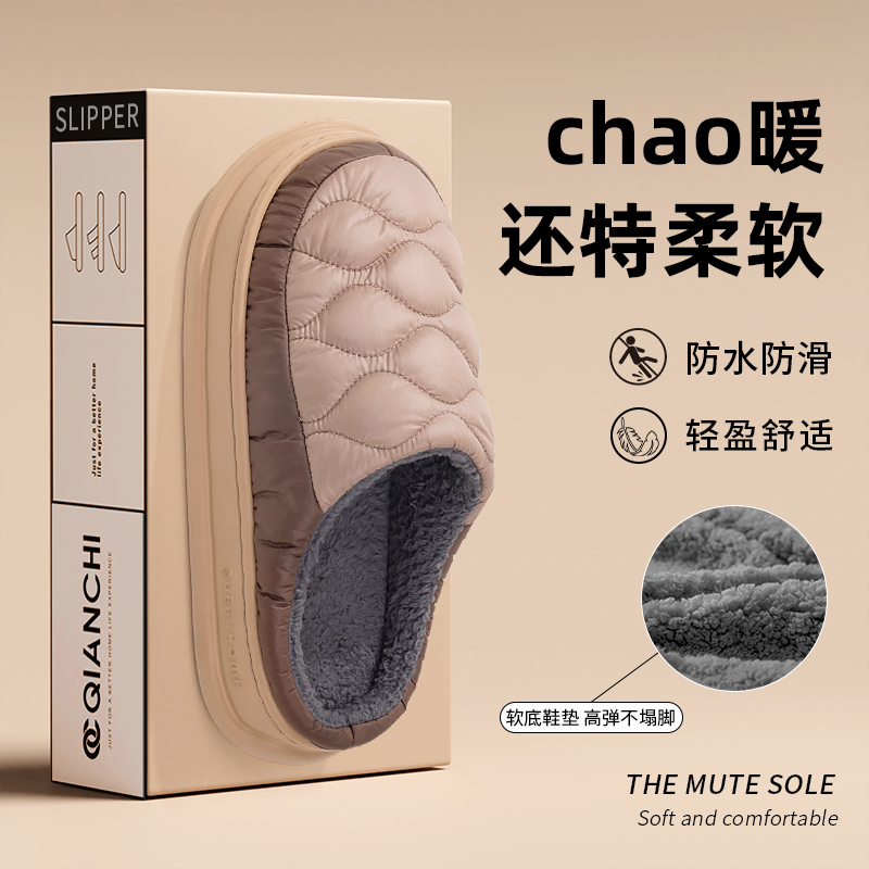 防滑保暖毛绒情侣棉拖鞋 防水棉拖鞋 家居室内2024新款 冬季 女冬 男款