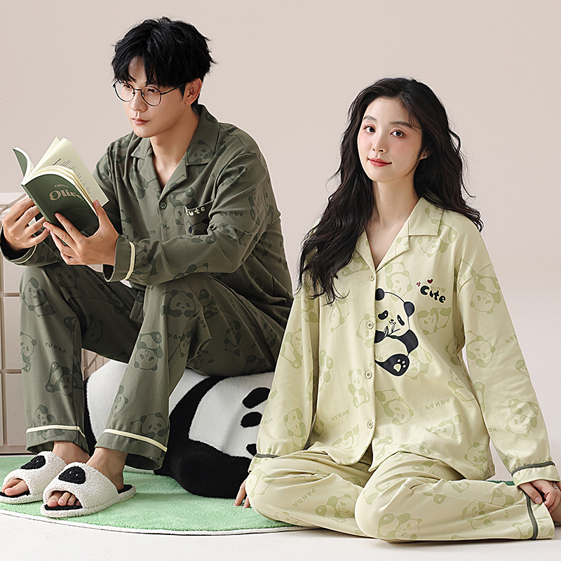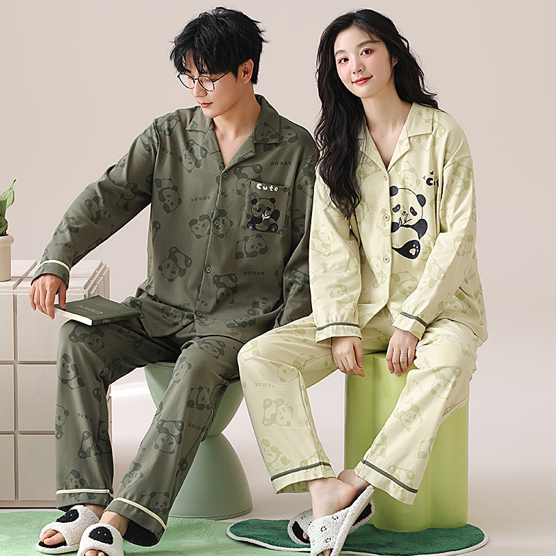 全棉家居服套装 可人儿春秋季 翻领男女士长袖 开衫 情侣纯棉睡衣韩版