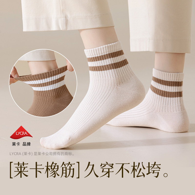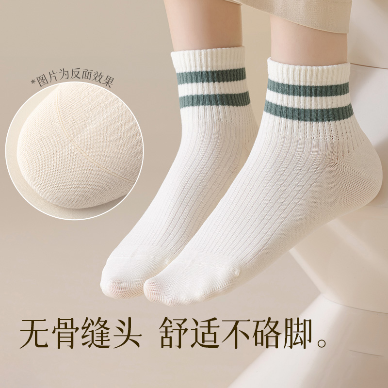 爆款 袜子女款 纯棉2024新款 春秋款 中筒条纹全棉袜女士短袜 100%正品