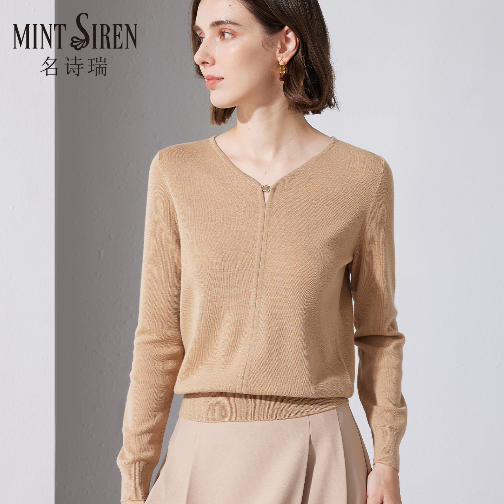 套头百搭保暖针织衫 羊毛衫 v领长袖 女秋冬新款 毛衣洋气上衣 打底衫