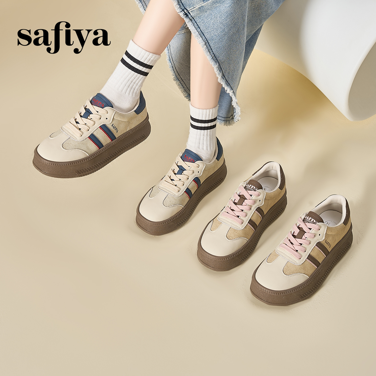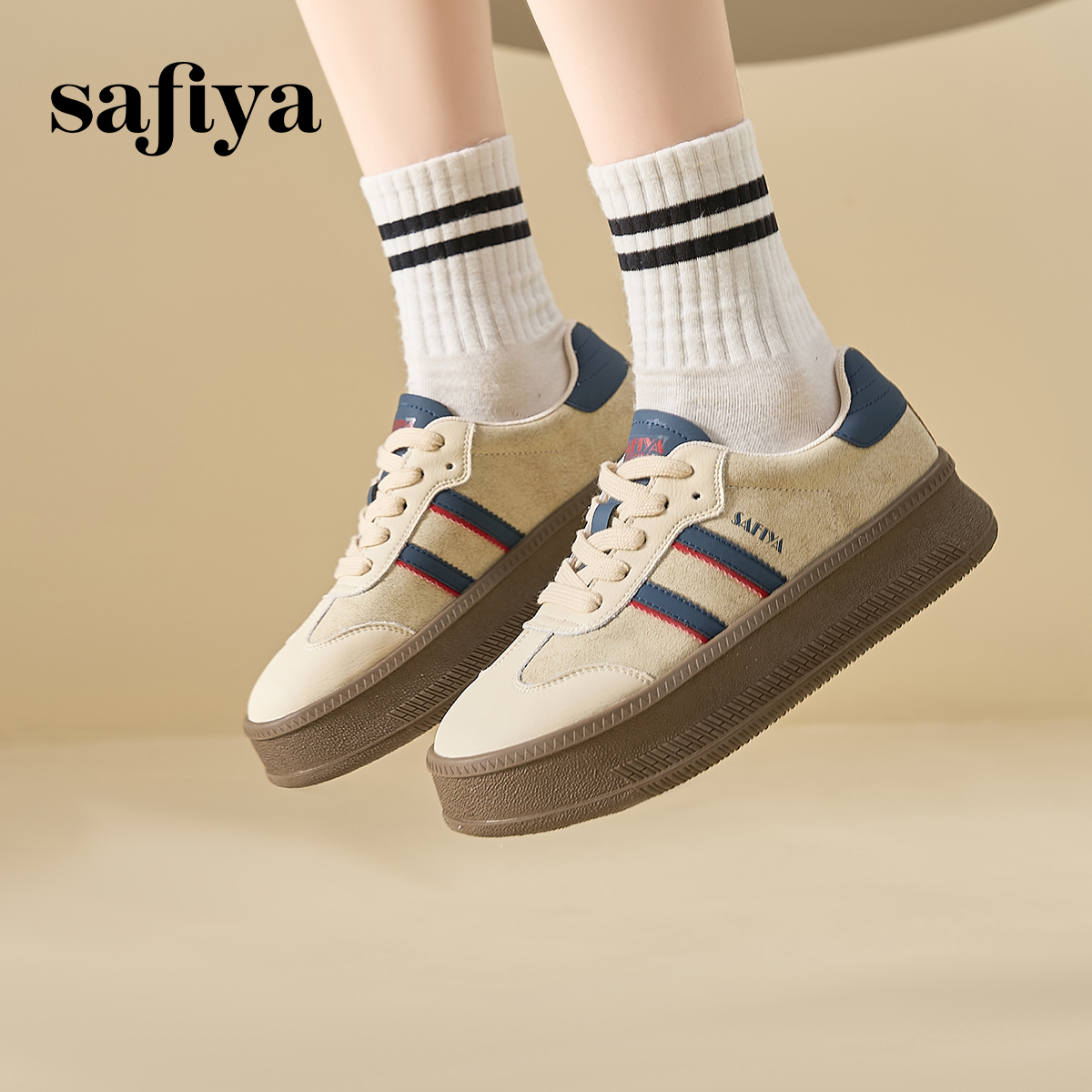 学院风透气百搭轻便厚底德训鞋 新款 女春季 索菲娅复古拼色休闲鞋