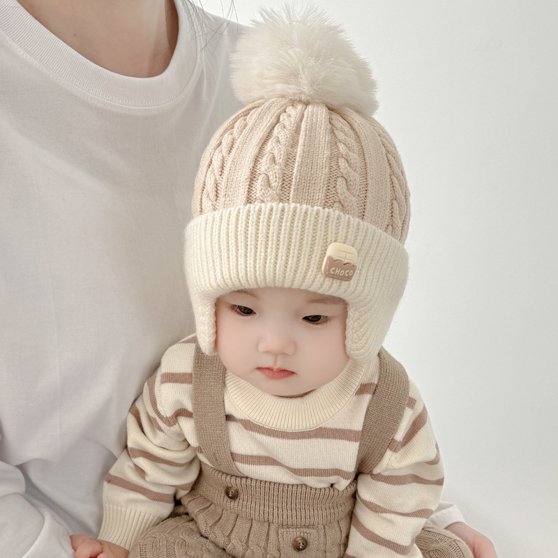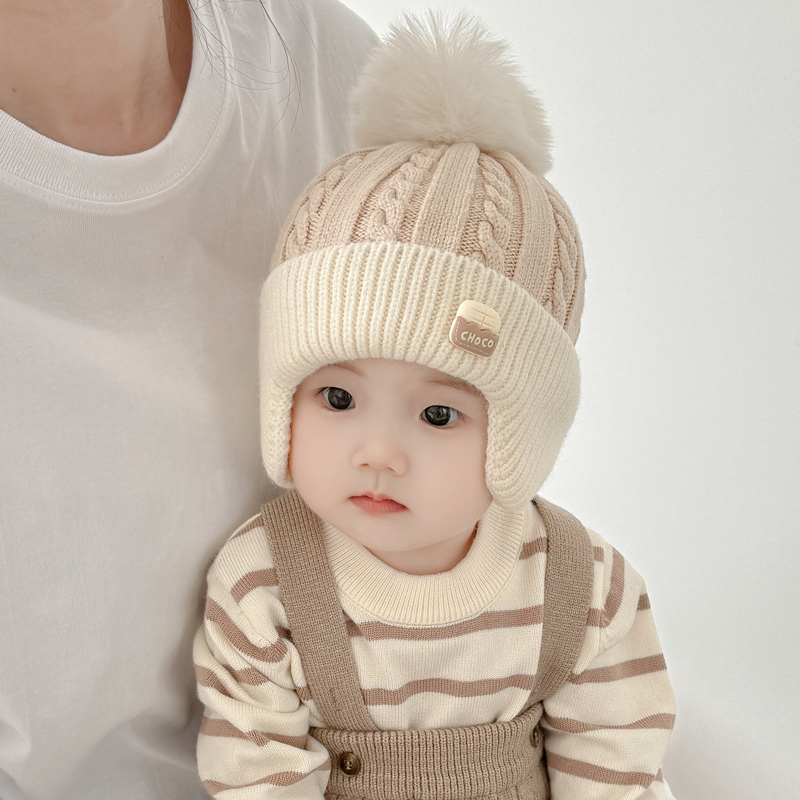 宝宝帽子韩系百搭毛球护耳帽秋冬季 男女童保暖套头帽加厚婴儿超萌