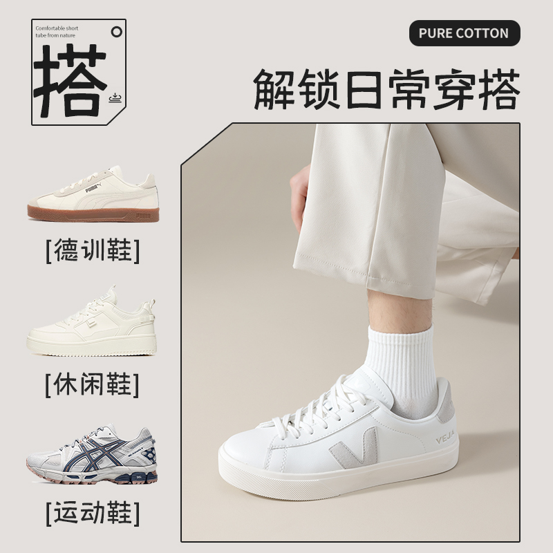 潮运动袜吸汗透气长筒袜 防臭纯棉中筒袜男款 白色袜子男士 春秋冬季
