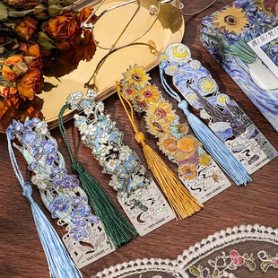 梵高复古油画书签金属镂空古典中国风高档精致高级感黄铜书夹小学生送老师礼物创意高颜值故宫文创纪念品定制