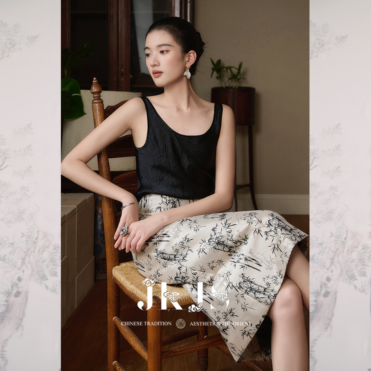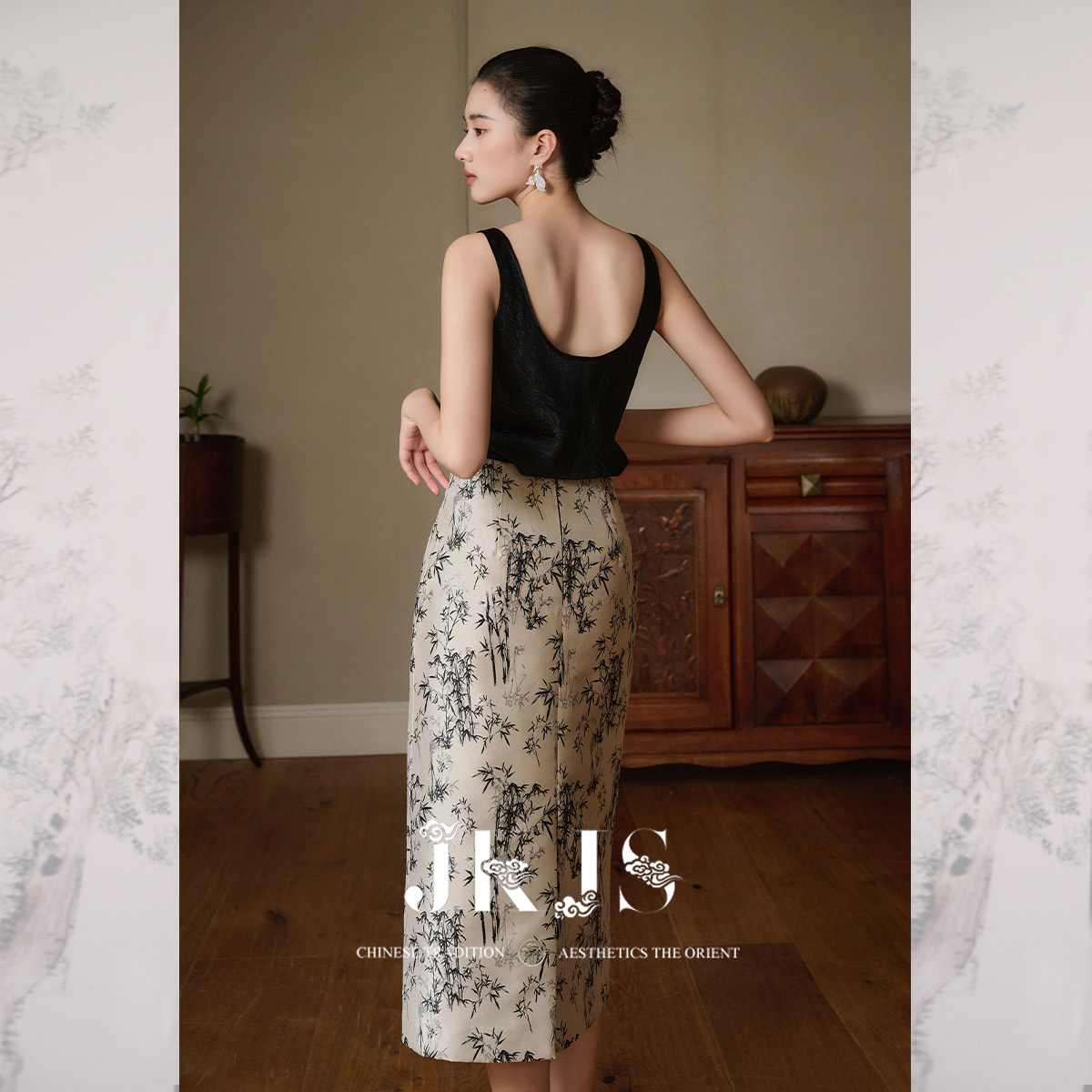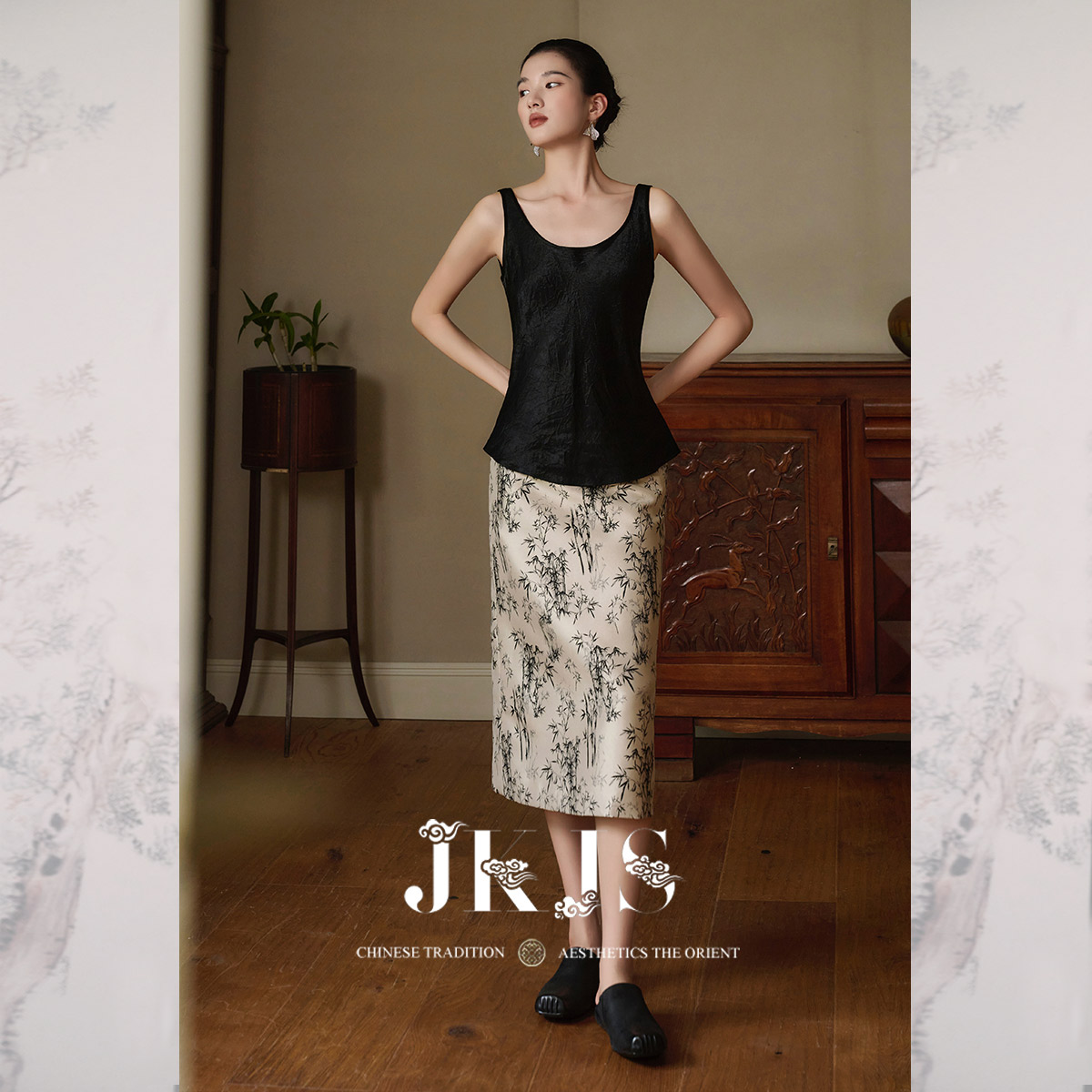 新中式 竹纹提花 半身裙春秋垂坠感半裙气质裙子 水墨竹韵 JKJS