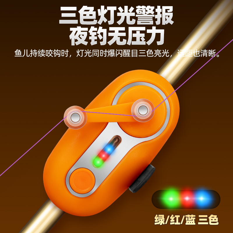 川泽电子夜光竿稍灯夜钓咬钩变色海竿抛竿智能感应卡扣钓鱼报警器