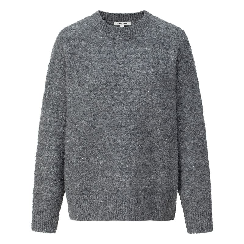 圆领纯色针织衫 高级感亮片长袖 法式 简约百搭套头毛衣2025秋冬新款