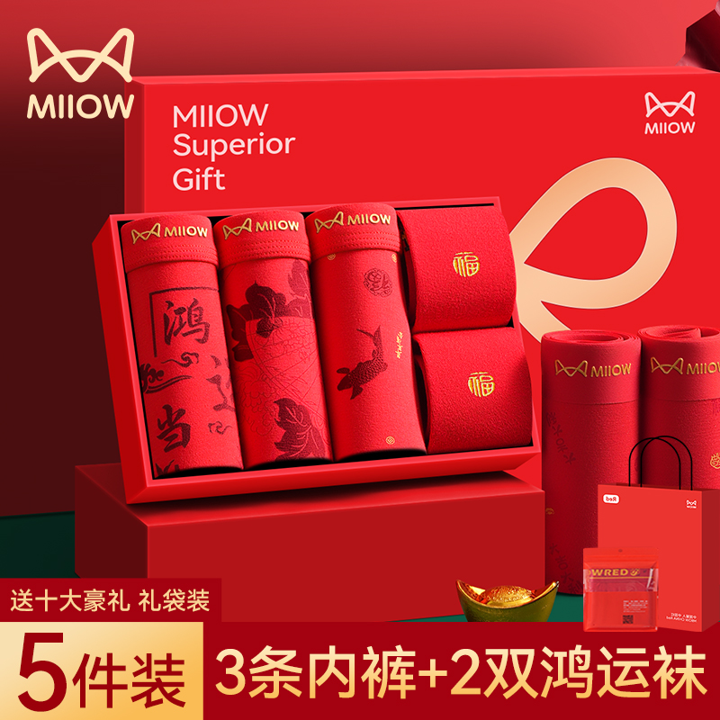 纯棉四角平角短裤 2025蛇年男款 头结婚礼物 本命年红色内裤 猫人男士