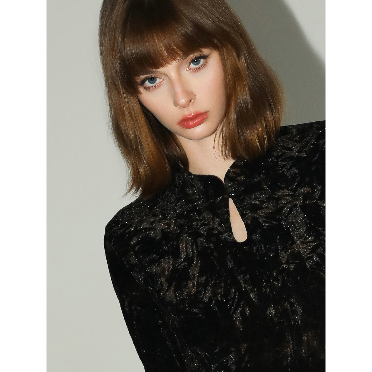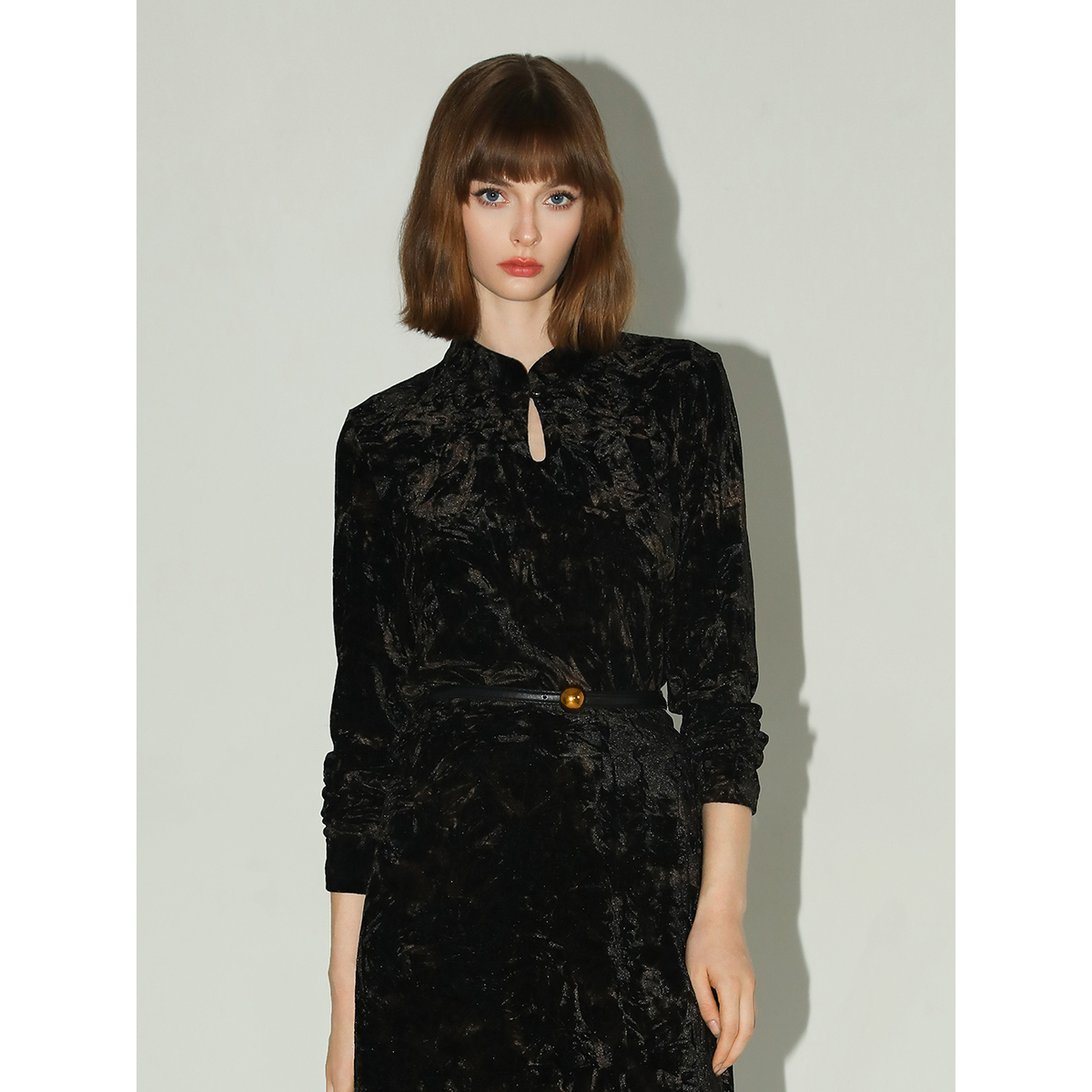 上衣TS7069 女国风气质立领长袖 COCOBELLA新中式 扎染丝绒衬衫