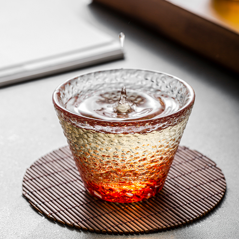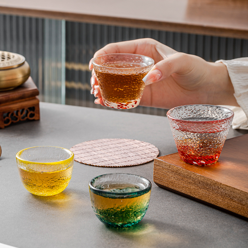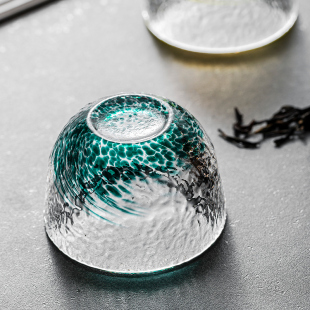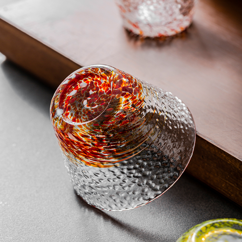 竹木本记日式 玻璃清酒杯一口杯创意锤目纹烈酒杯白酒杯茶杯