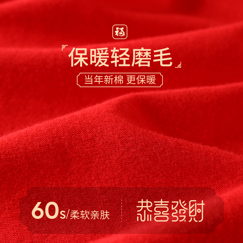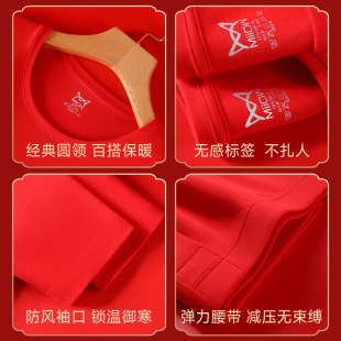 女 纯棉2025蛇年红色情侣结婚秋衣秋裤 猫人本命年保暖内衣男士 套装