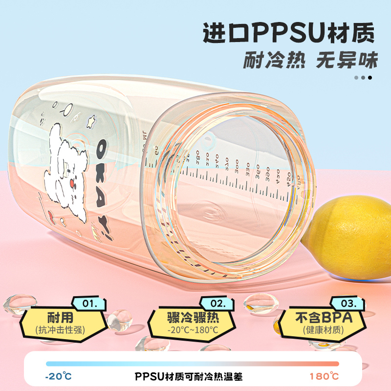 hegen海格恩吸管杯儿童学饮杯婴儿9个月以上宝宝PPSU直饮水杯奶瓶