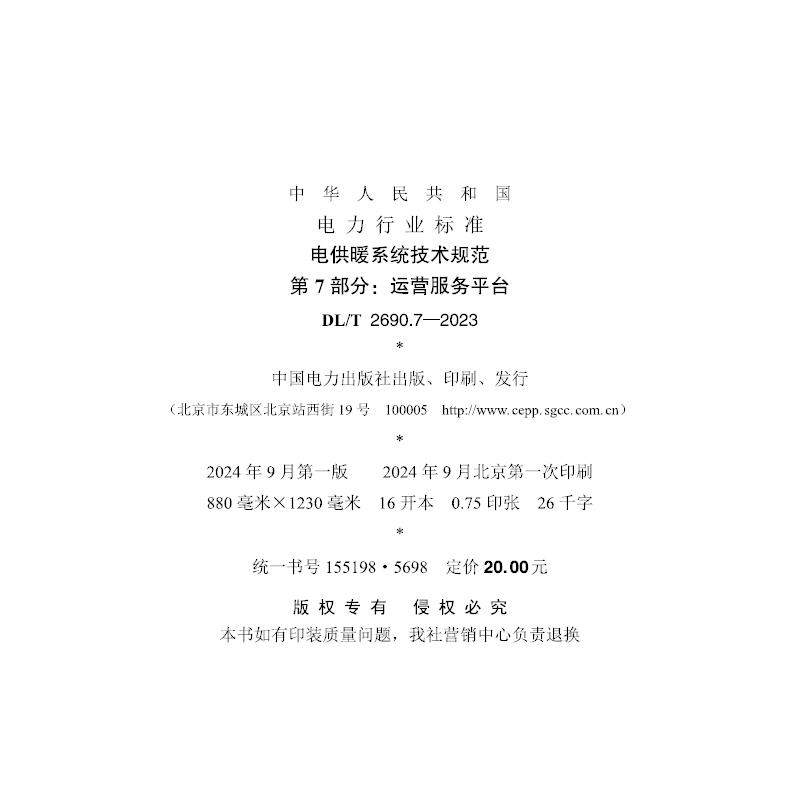 电供暖系统技术规范 2690.7—2023 DL/T 第7部分:运营服务平台 按需印刷