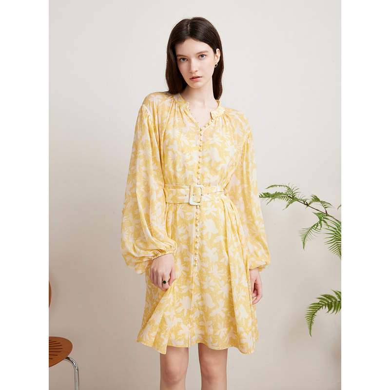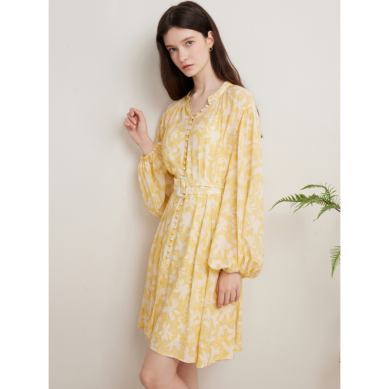 法式 Goodland美地春季 浪漫系带V领连衣裙 真丝系列