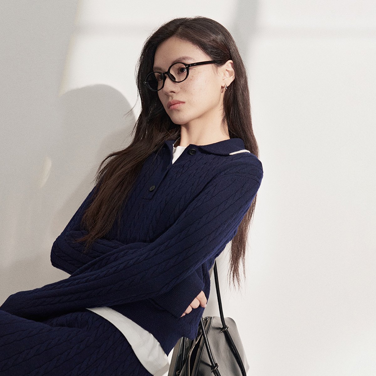 lefame拉飞姆冬季 摩登蕾丝压褶通勤风针织连衣裙 法式