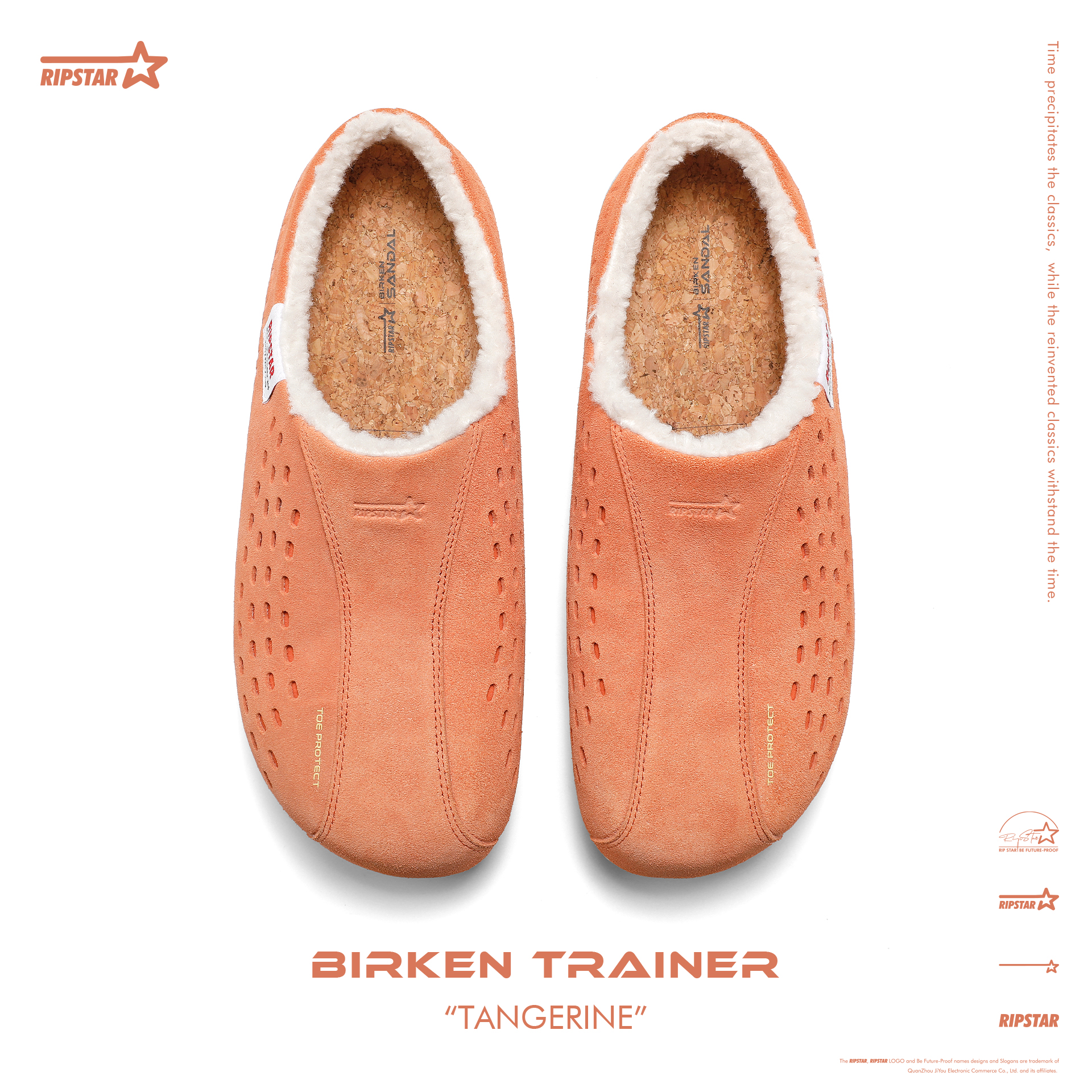 爆炸星加绒勃肯鞋 柑橘 秋冬季 厚底增高半拖鞋 新款 RIPSTAR