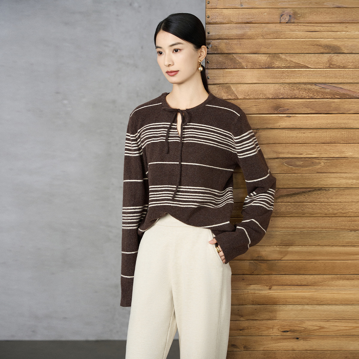 高级感上衣宽松打底针织衫 圆领100%纯山羊绒衫 女高端毛衣秋冬新款