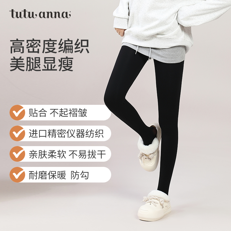 tutuanna秋冬光腿神器连裤 加绒加厚保暖亲肤显瘦连裤 袜女