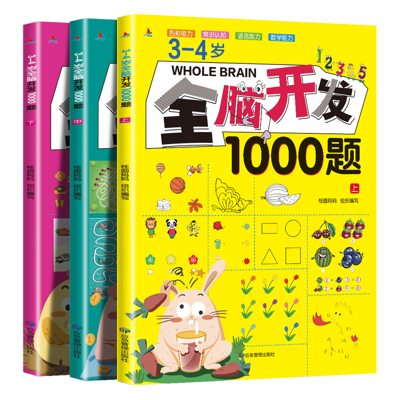 4岁全脑开发思维训练1000题幼儿益智书籍专注力练习册宝宝全脑开发大书儿童课堂早教闪卡全脑潜能开发教具全套游戏书 全套3本