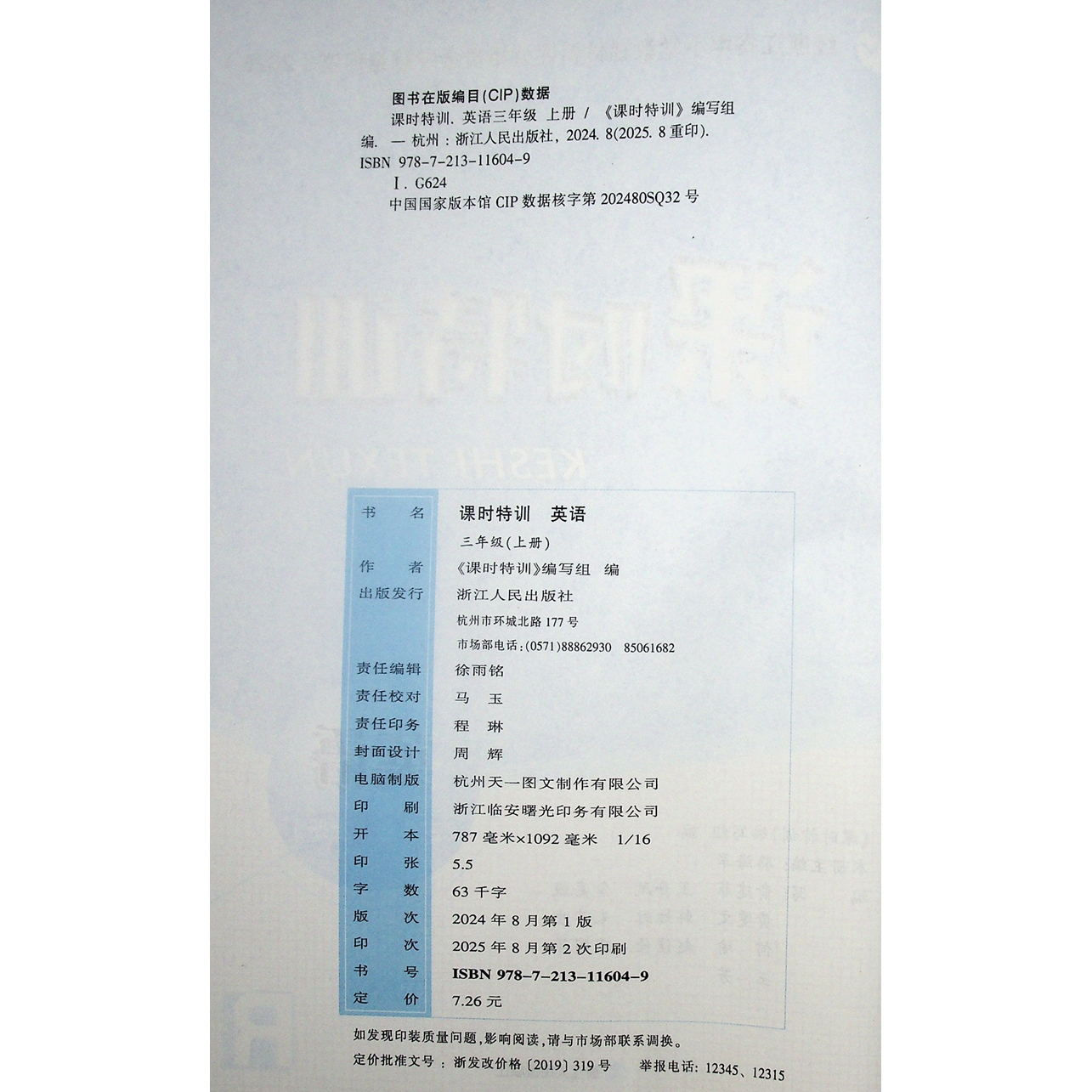 英语人教版 小学3三年级上册 浙江同步课时特训 2025秋