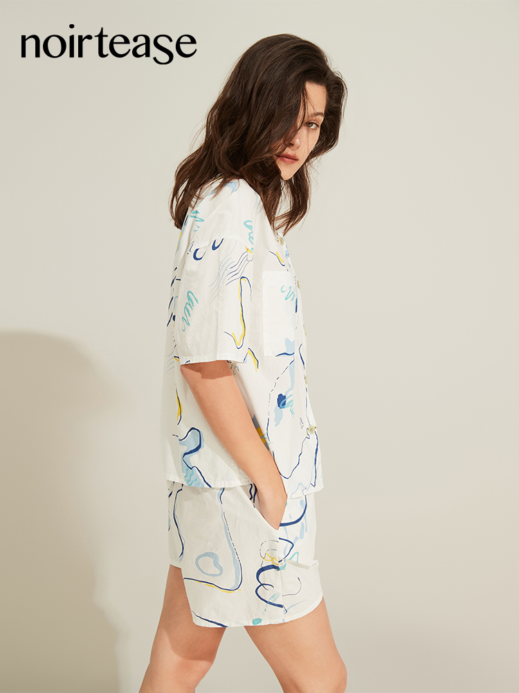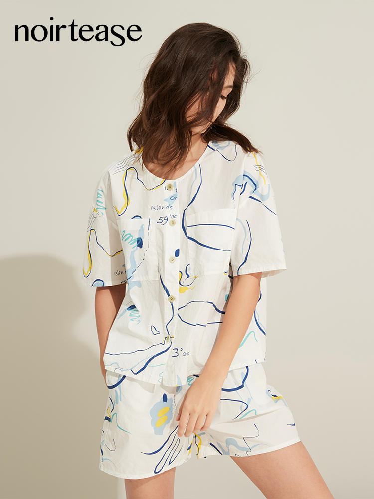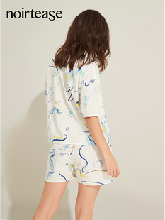 凉感家居服两件套装 NoirTease奈黎诗春夏纯棉薄款 印花睡衣女短袖