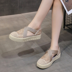 网面透气一脚蹬懒人百搭镂空单鞋 厚底渔夫鞋 凉鞋 新款 女2025春夏季