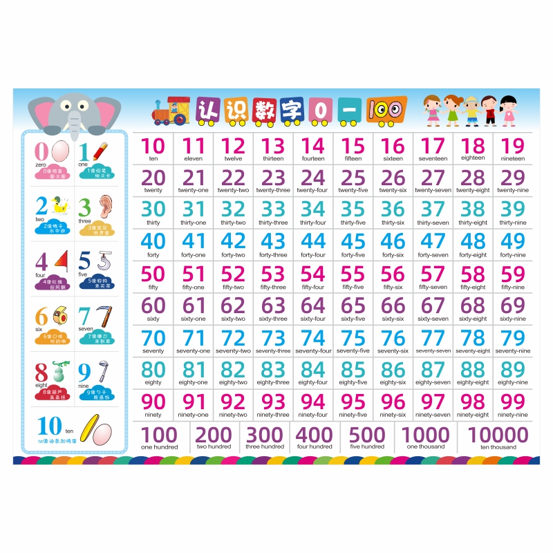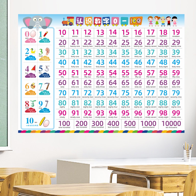 一年级儿童学认0 1到100认识数字挂图幼儿园学习神器百数表墙贴