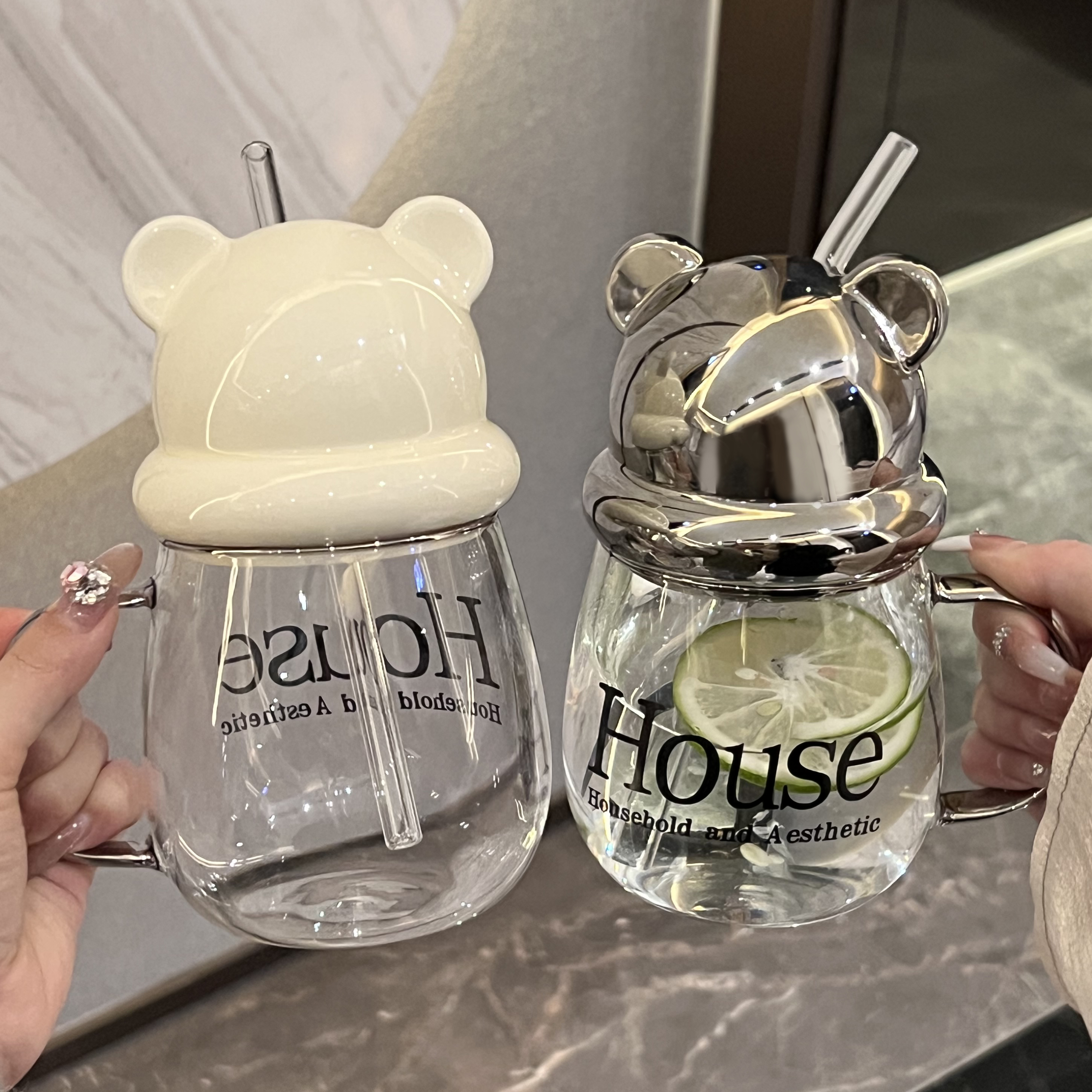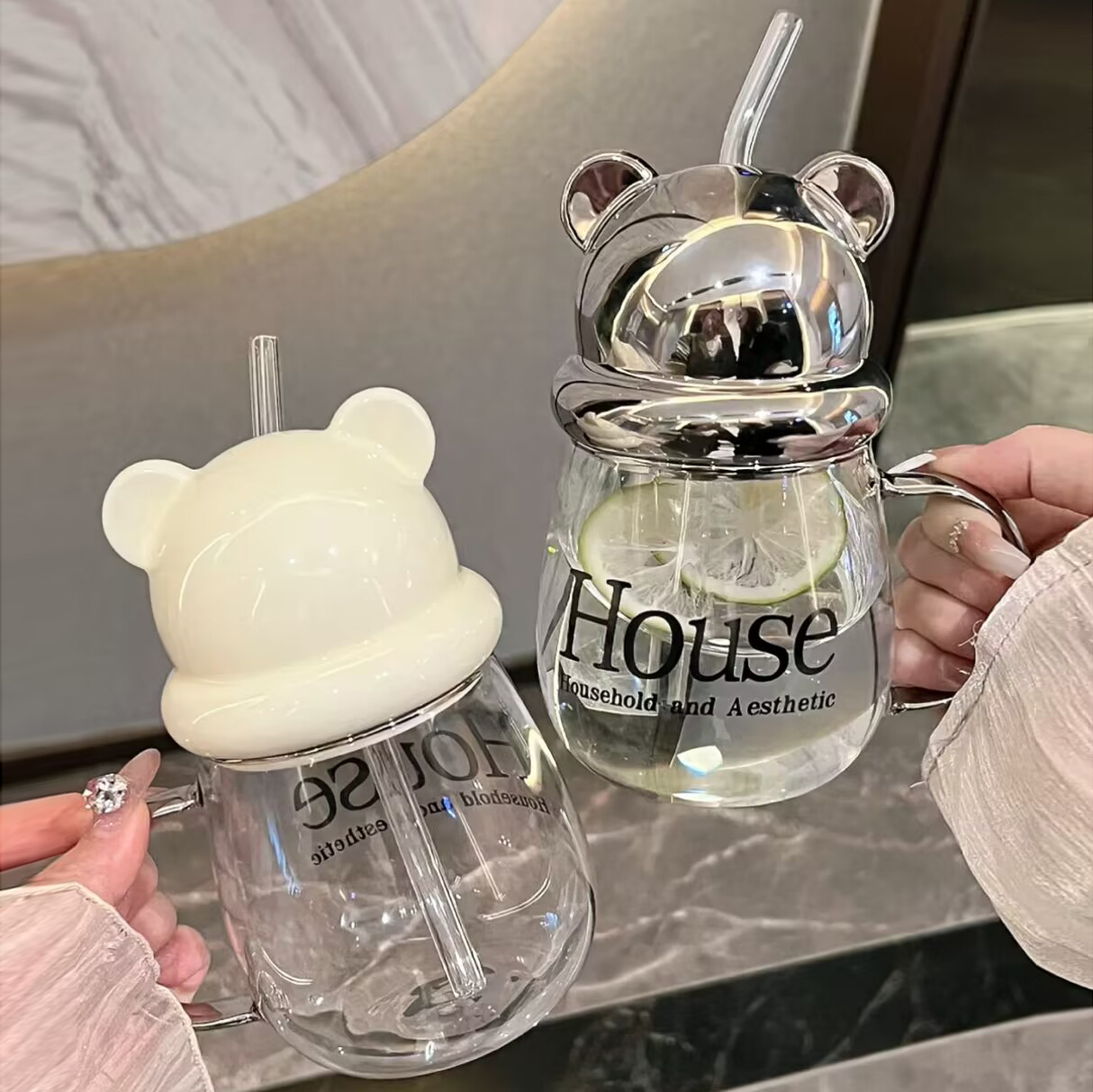 铃兰花保温杯男女316不锈钢车载双饮咖啡杯吸管泡茶水分离水杯