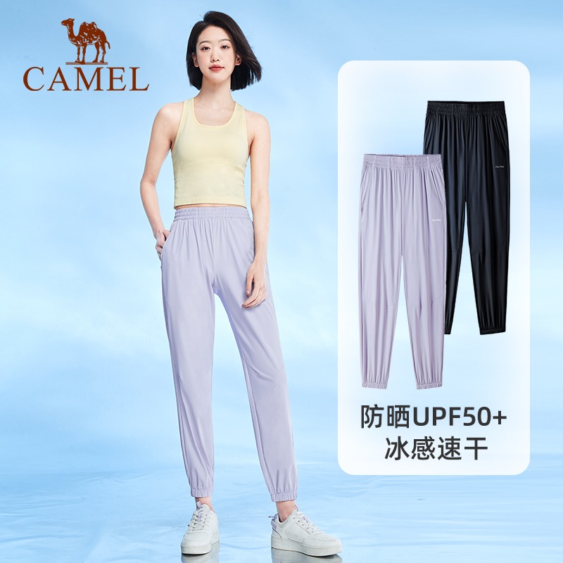 休闲透气束脚宽松速干长裤 夏季 男 女士薄款 骆驼冰丝凉感防晒运动裤