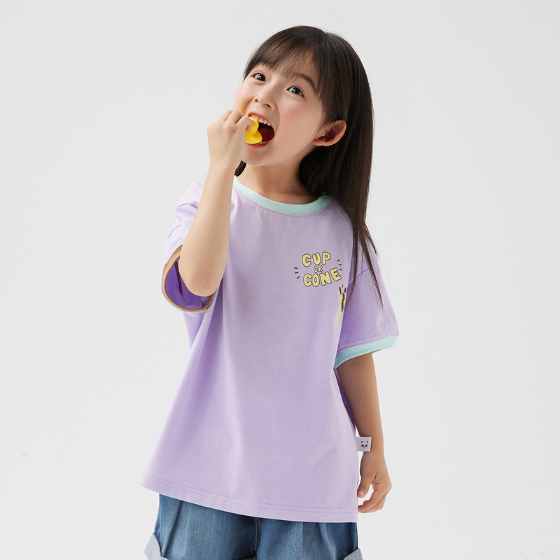 播broadcute童装 男童女童休闲圆领罗纹领口T恤KEQ4Y501 春夏新款